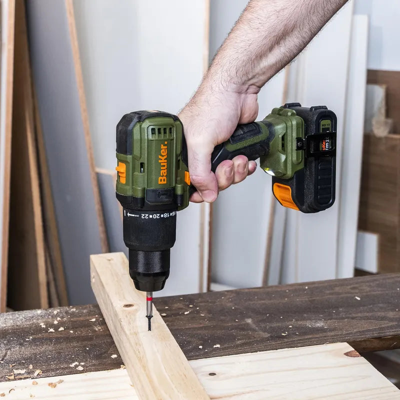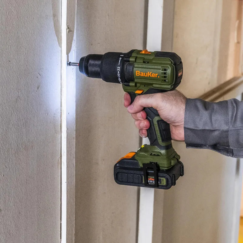 BAUKER Taladro Percutor 13mm 20 V + 2 Baterías 2 AH + Cargador