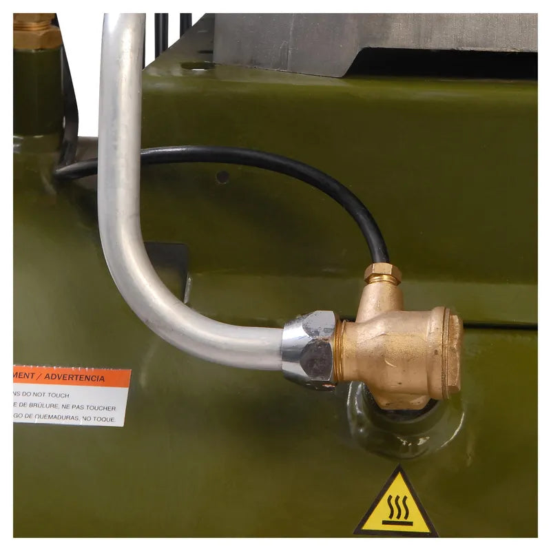 Este compresor cuenta con un flujo de salida de 265 l/min y alcanza una presión máxima de 145 Psi, suficiente para la mayoría de las aplicaciones. Su motor eléctrico de 230 V te entrega la potencia necesaria para realizar tus trabajos sin problemas. El equipo tiene un peso de 75 kilos y sus dimensiones son 80 cm de largo, 41 cm de ancho y 80 cm de alto. Con una capacidad de estanque de 100 litros, tendrás aire comprimido disponible para un trabajo continuo.