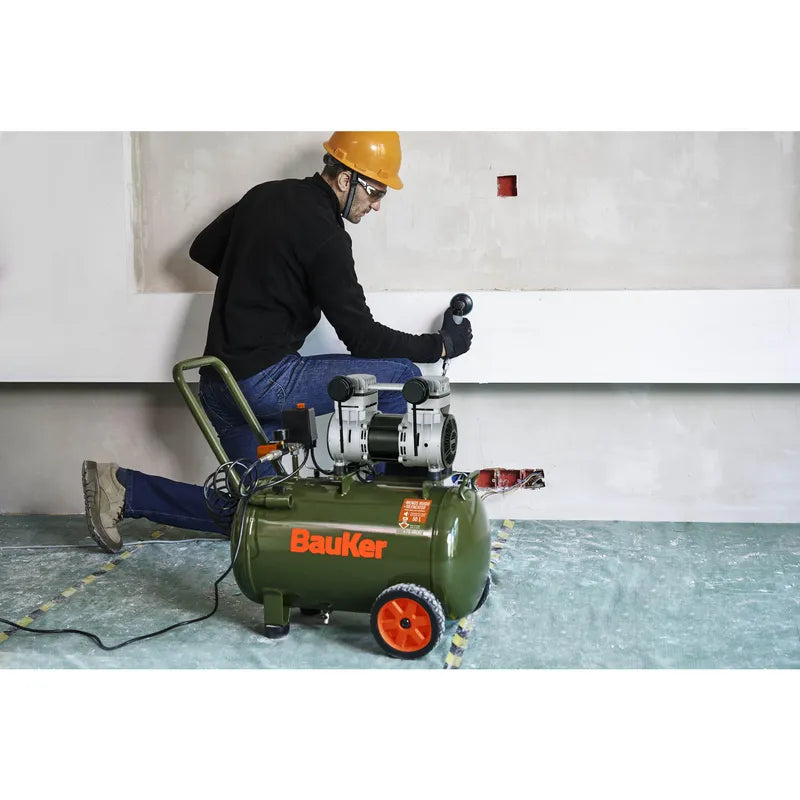 BAUKER Compresor de Aire Portátil Insonoro/sin Aceite 1.6 HP 50 Litros 3305059