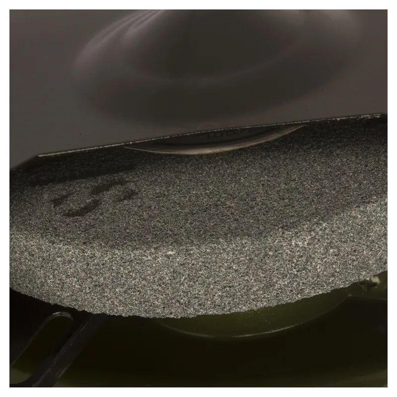 Incluye Trae 4 perforaciones para fijar a un banco. Manilla para transporte. Montado sobre rodamientos. Bases orientable para dar el ángulo de afilado.
