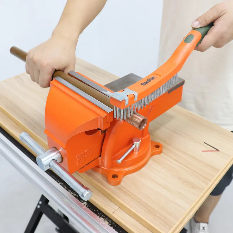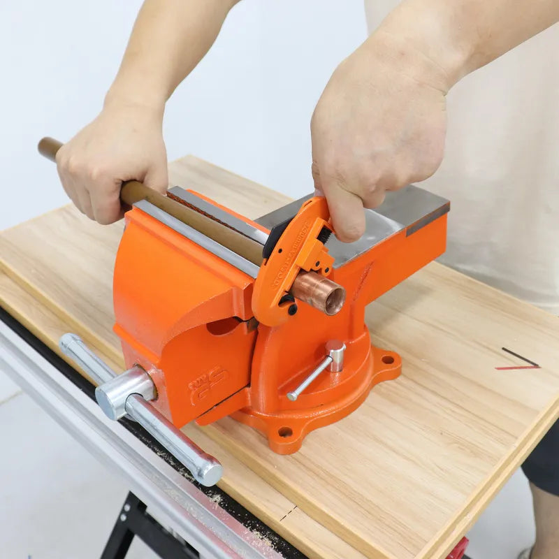 Dale vida a tus proyectos con el Tornillo de Banco Bauker de 6", ¡tu aliado perfecto para trabajos profesionales! Su diseño robusto en acero inoxidable y color naranja vibrante, te ofrece una capacidad de apertura de 150 mm, ideal para sujetar firmemente tus piezas. Con su giro de 360° sobre su eje, tendrás total control y comodidad durante tus tareas. No esperes más para tener la herramienta que necesitas para tus proyectos.